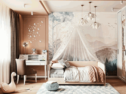 Consider incorporating colorful rugs and curtains that add warmth and vibrancy to the room while also providing a cozy play area. Open shelving units and bins can help keep toys and belongings organized, making it easier for children to access and tidy up their space.
